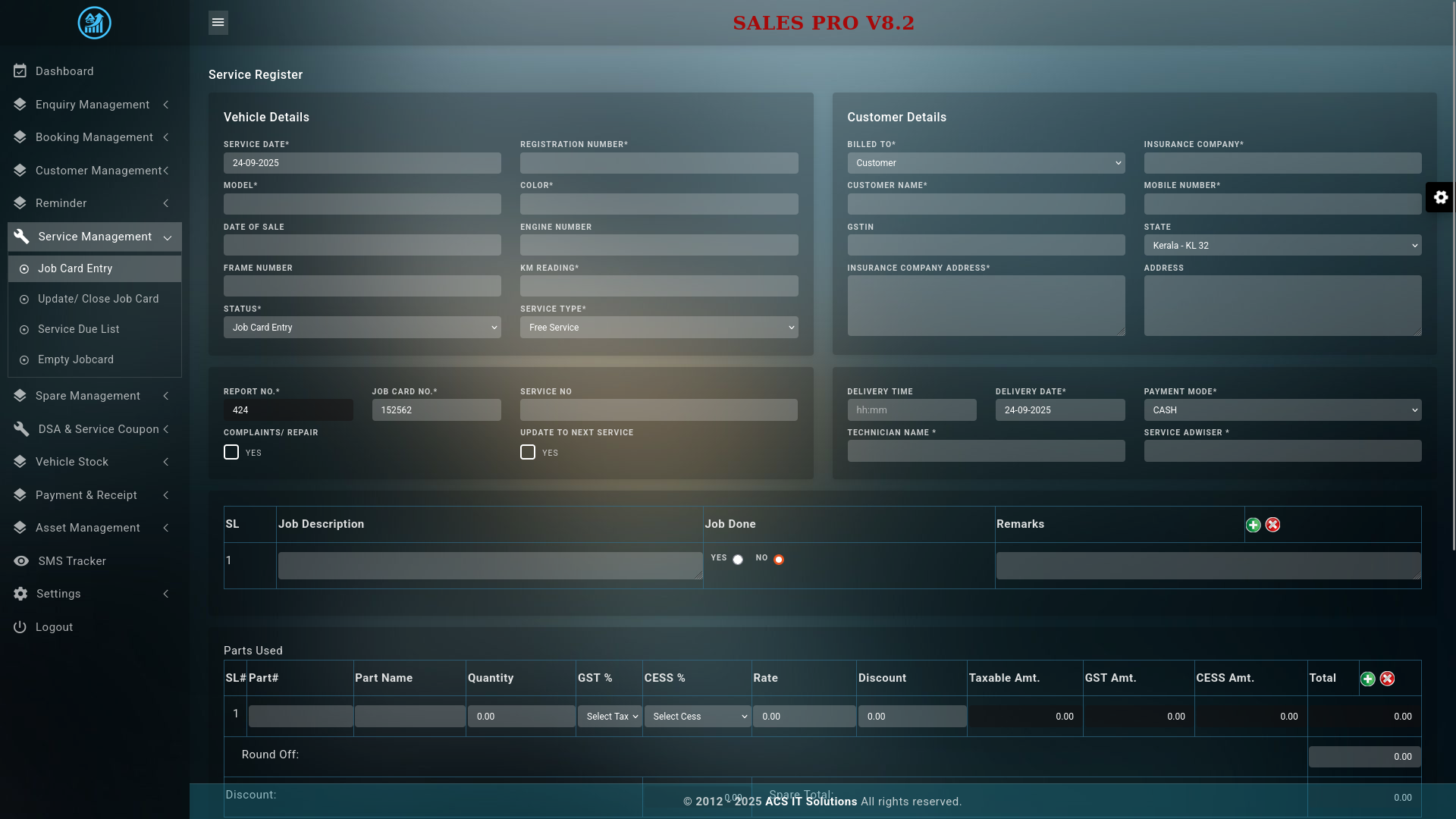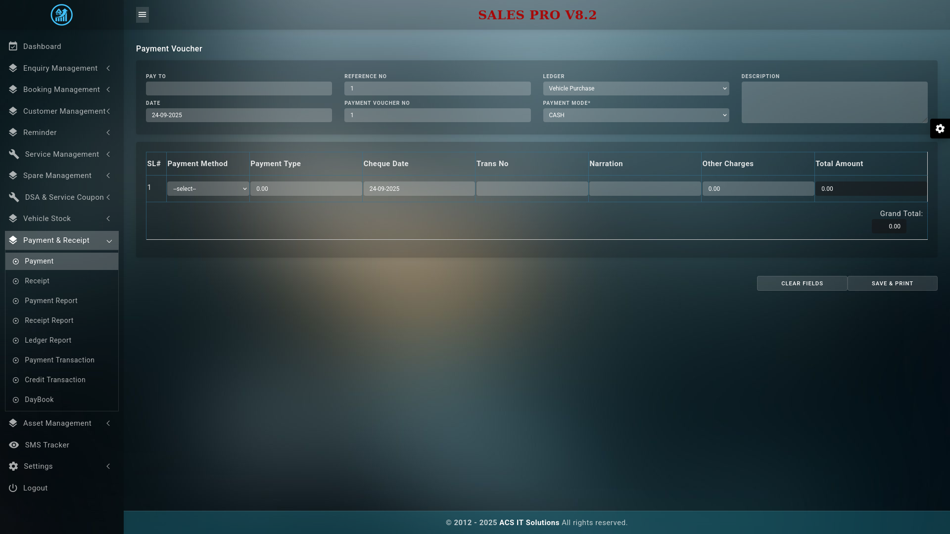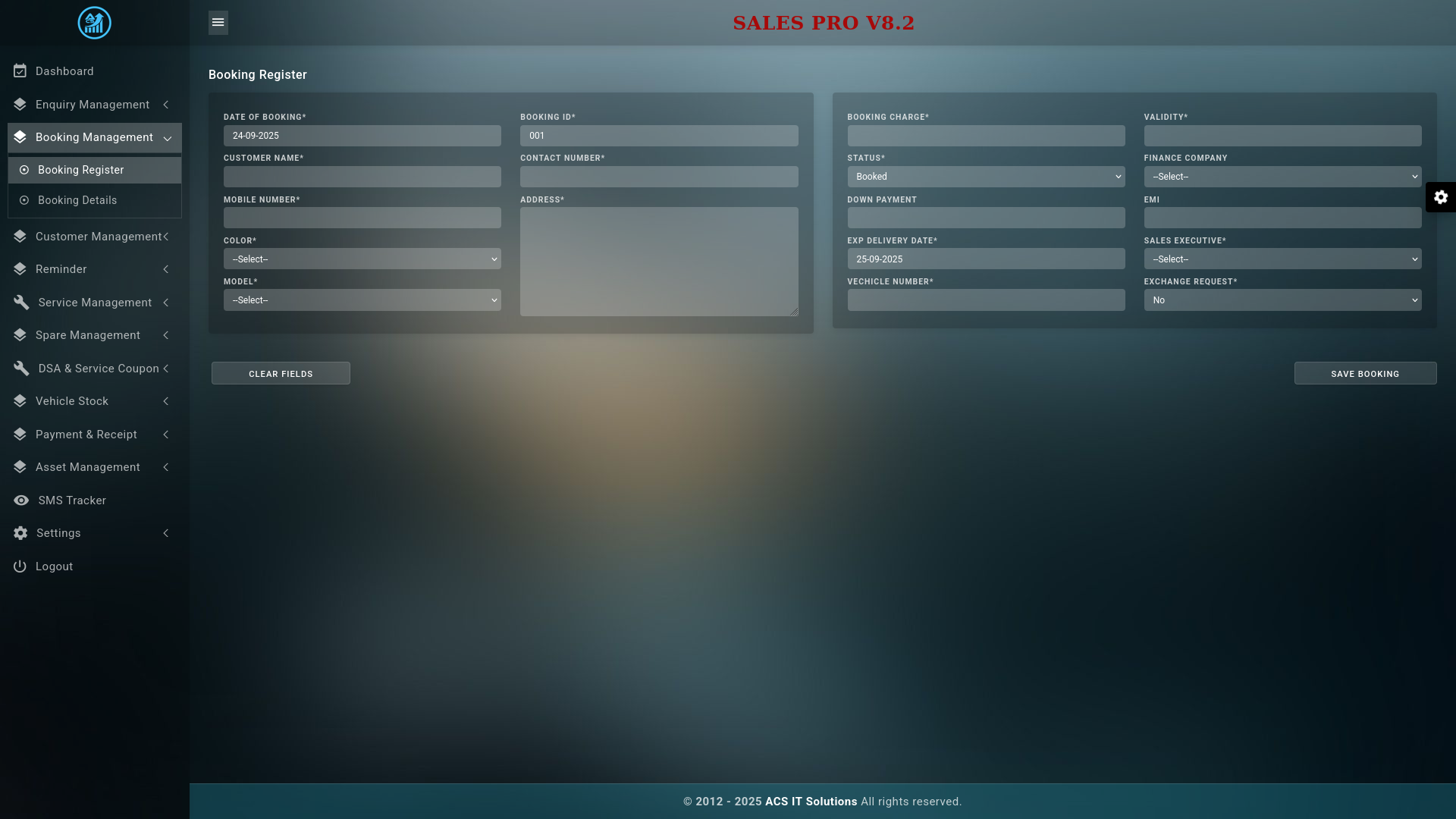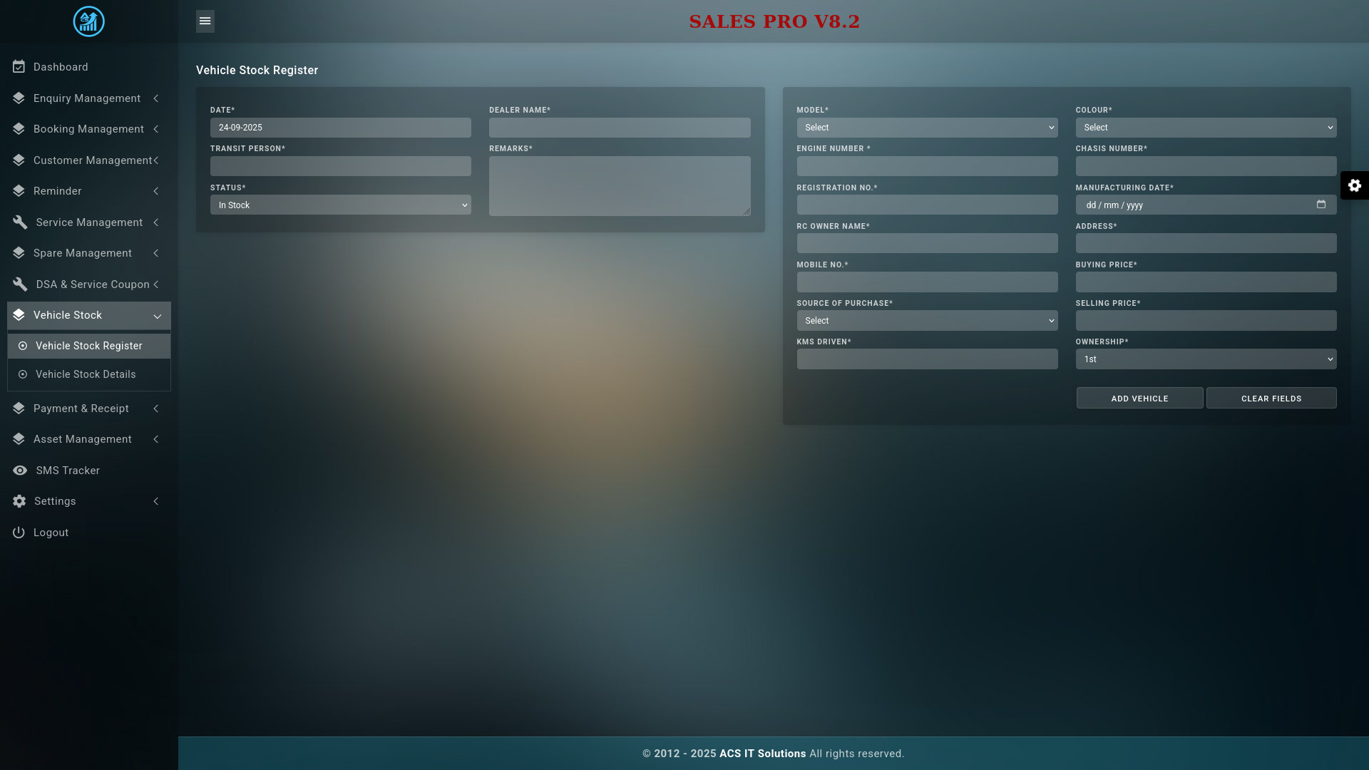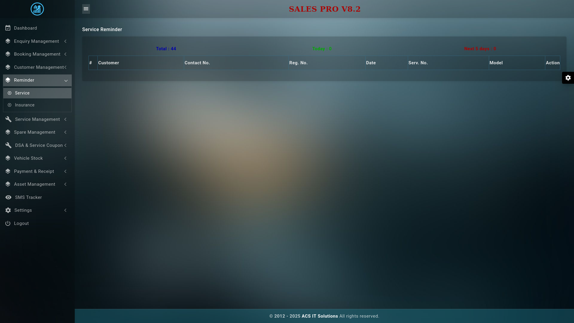 Salespro is software created for an automobile showroom. Now it is working with the 8th and updated version of CRM. It is a complete showroom management software that deals with the inquiry, booking, purchase, and vehicle service of a customer. And also, it is a reminder software, i.e., reminds the vehicle service and vehicle insurance..