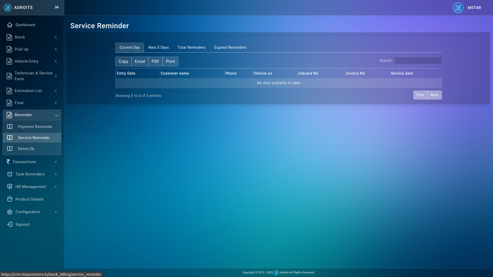smart automation feature designed to help workshops maintain strong customer relationships and ensure timely service follow-ups. It automatically tracks each vehicle’s last service date, mileage, and next due date, then sends personalized reminders to customers through WhatsApp, SMS, or email before the next service is due. The system allows customization of reminder schedules—such as 7 days, 15 days, or 30 days before the due date—and includes details like vehicle number, service type, and workshop contact information. It can also be used to remind customers about pending payments, AMC renewals, or warranty expirations. Each reminder is logged in the system, providing staff with a clear view of upcoming and overdue services. By automating the follow-up process, the Service Reminder module reduces missed appointments, increases repeat business, and enhances customer satisfaction through proactive communication. Seamlessly integrated with the job card and billing modules, it ensures that every customer receives timely service updates and that workshops maintain consistent engagement and revenue flow.